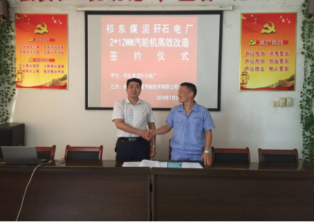 2018年7月2日,我公司順利簽定中國五百強——皖北煤電集團祁東煤泥矸石電廠兩臺12MW抽凝式汽輪發(fā)電機組通流結(jié)構(gòu)綜合技改提效EPC項目,合同金額968萬元。