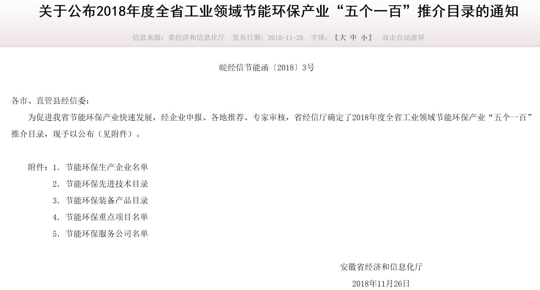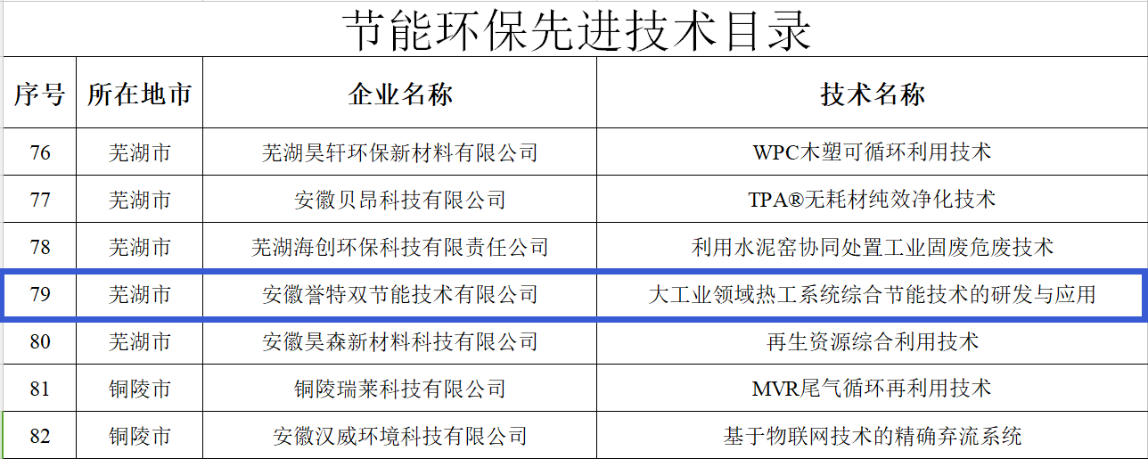 熱烈祝賀我公司節(jié)能環(huán)保先進(jìn)技術(shù)和重點(diǎn)節(jié)能項(xiàng)目并列入選安徽省2018年度全省工業(yè)領(lǐng)域節(jié)能環(huán)保產(chǎn)業(yè)“五個(gè)一百”推介目錄