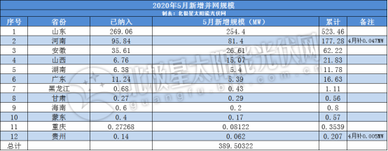 戶用光伏網(wǎng)訊:截至目前,共有山東、河南、安徽、山西等12個省份發(fā)布5月新增戶用光伏項目名單,總裝機規(guī)模389.50MW。其中,穩(wěn)居榜首的依然是大省山東,新增規(guī)模254.4MW,河南81.4MW、安徽26.61MW緊跟其后。