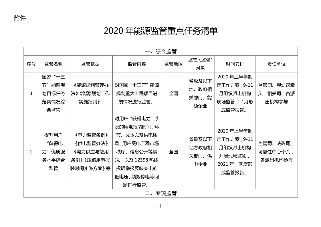 附件:2020年能源監(jiān)管重點任務(wù)清單