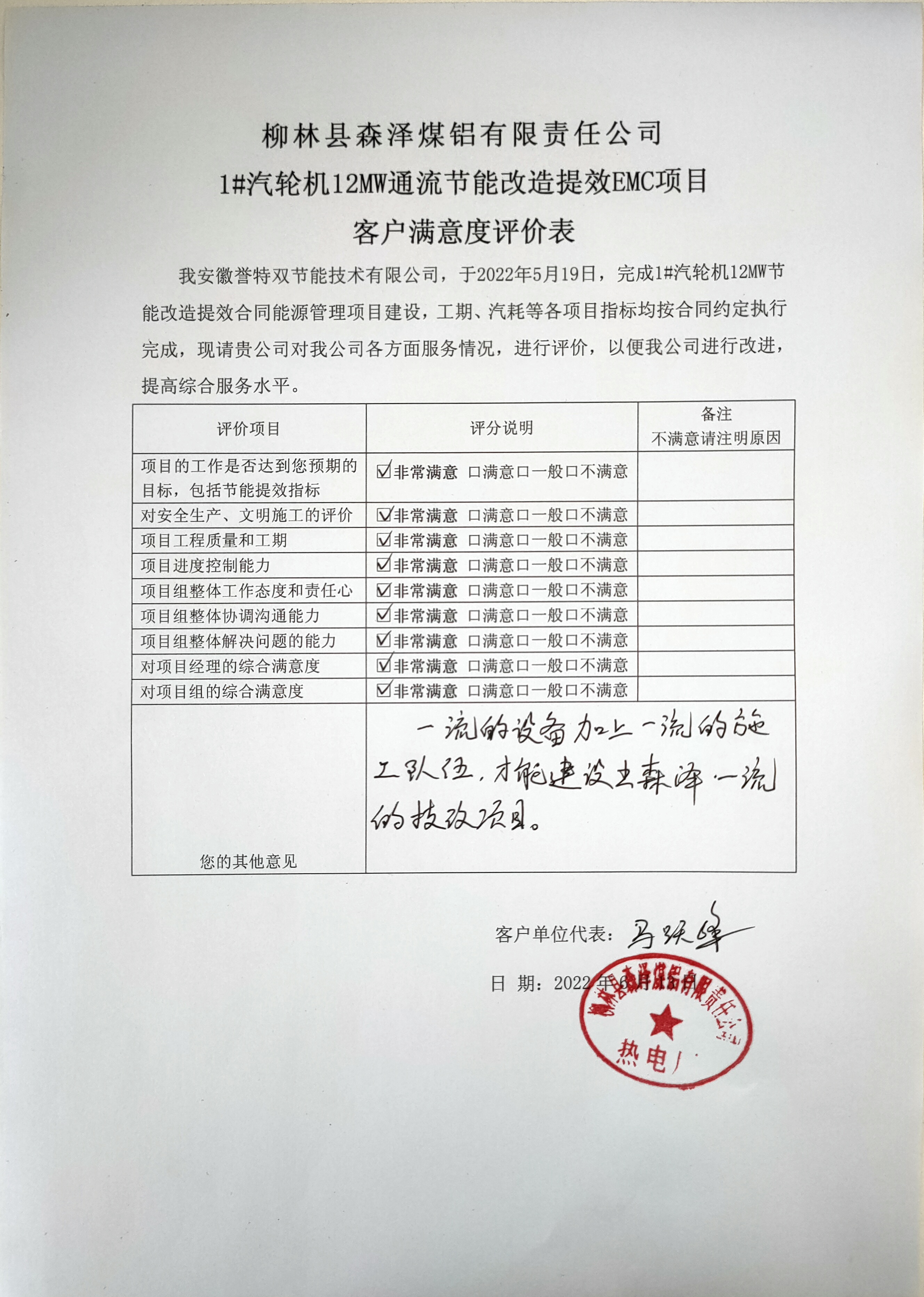 2022年5月29日,我公司全額投資改造實施的森澤集團(tuán)1#機組12MW背壓式汽輪機合同能源管理項目通過工程驗收,節(jié)能提效比例達(dá)34.1%,年可創(chuàng)造節(jié)能經(jīng)濟(jì)效益達(dá)1196.7萬元以上。
