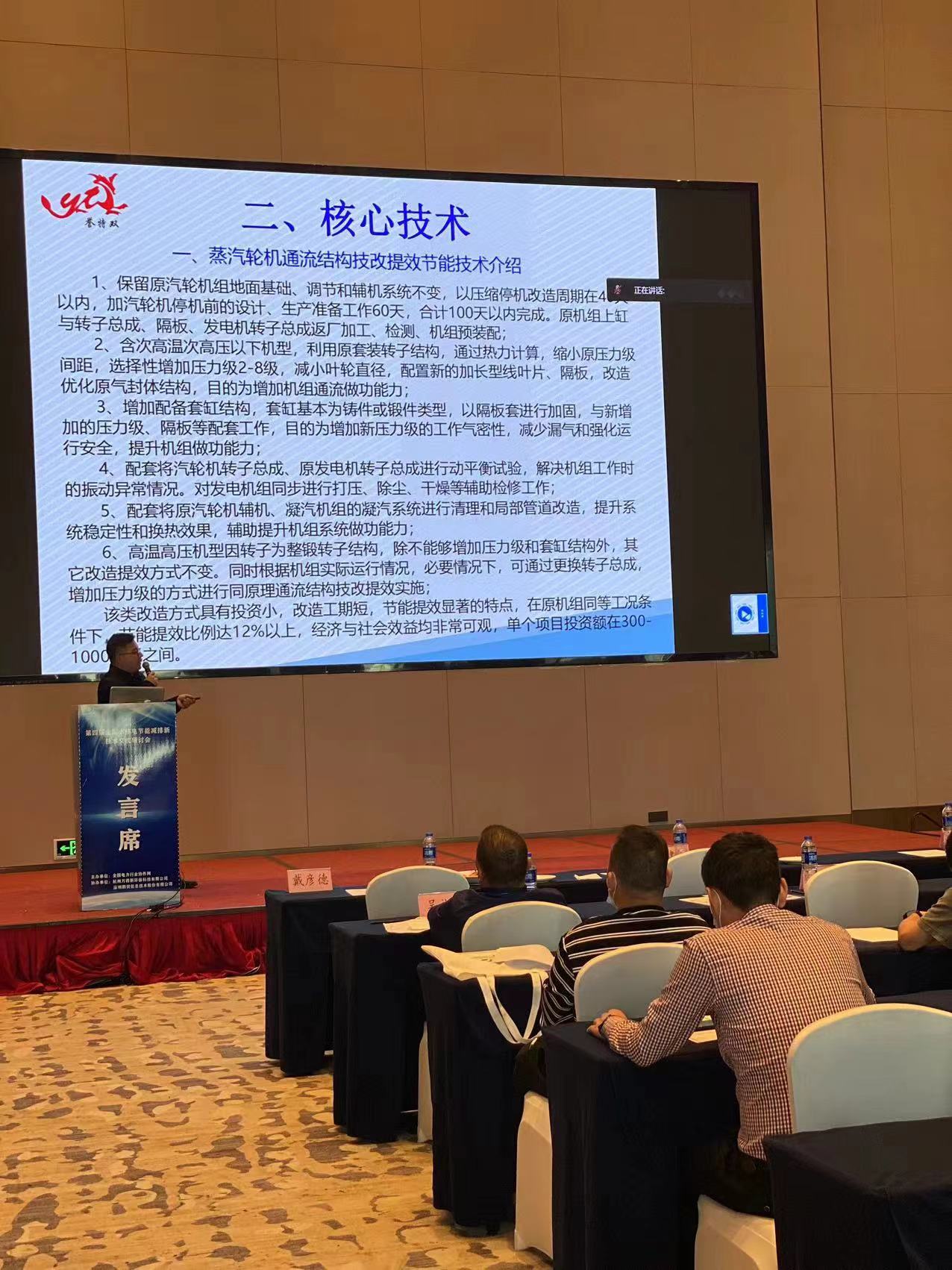 現(xiàn)場來自全國各地的專家學者、協(xié)會領導、參會企業(yè)等共同召開此次交流會。我公司作為特約嘉賓受邀參加本次交流研討會,并由節(jié)能事業(yè)部長湯偉做《工業(yè)蒸汽輪機通流結(jié)構技改提效及余熱余壓資源綜合利用節(jié)能技術的研發(fā)與應用》專題報告。