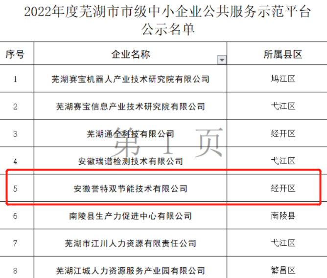 熱烈祝賀公司再次認(rèn)定為2022年度蕪湖市中小企業(yè)公共服務(wù)示范平臺(tái)