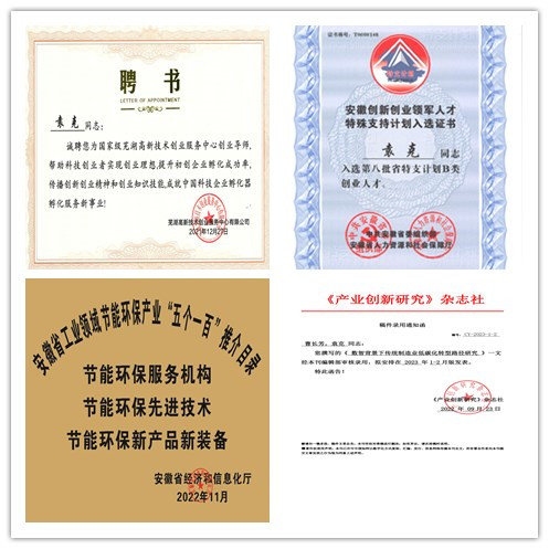 2022年公司獲得了多項榮譽資質。為企業(yè)贏得市場信譽,增加影響力,提升品牌形象:公司入選安徽省“專精特新”中小企業(yè);與安徽信息工程學院合作撰寫產業(yè)創(chuàng)新研究項目《數智背景下傳統(tǒng)制造業(yè)低碳化轉型路徑研究》將于2023年1月份已在《產業(yè)創(chuàng)新研究》雜志社發(fā)布;入選2022年蕪湖市雛鷹培育計劃名單;研發(fā)項目在蕪湖市科技局成功立項;總經理袁克認定入選安徽省第八批“特支計劃”創(chuàng)新創(chuàng)業(yè)領軍人才;入選安徽省節(jié)能環(huán)保產業(yè):“五個一百”推介目錄;總經理袁克獲聘國家級科創(chuàng)中心”創(chuàng)業(yè)導師“榮譽稱號;獲選“安徽省中小企業(yè)公共服務示范平臺”與“蕪湖市中小企業(yè)公共服務示范平臺”。