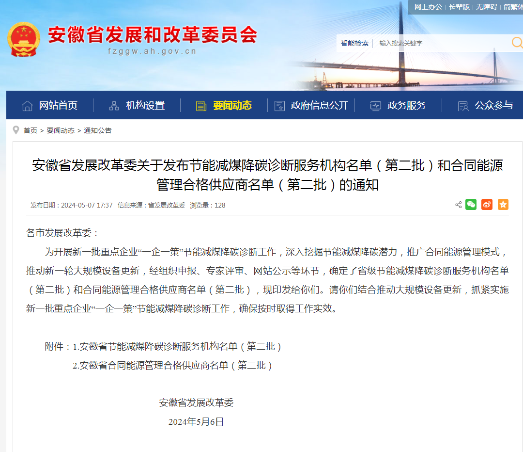 第二批安徽省發(fā)改委節(jié)能減煤降碳診斷服務(wù)機(jī)構(gòu)和合同能源管理合格供應(yīng)商資質(zhì)名單
