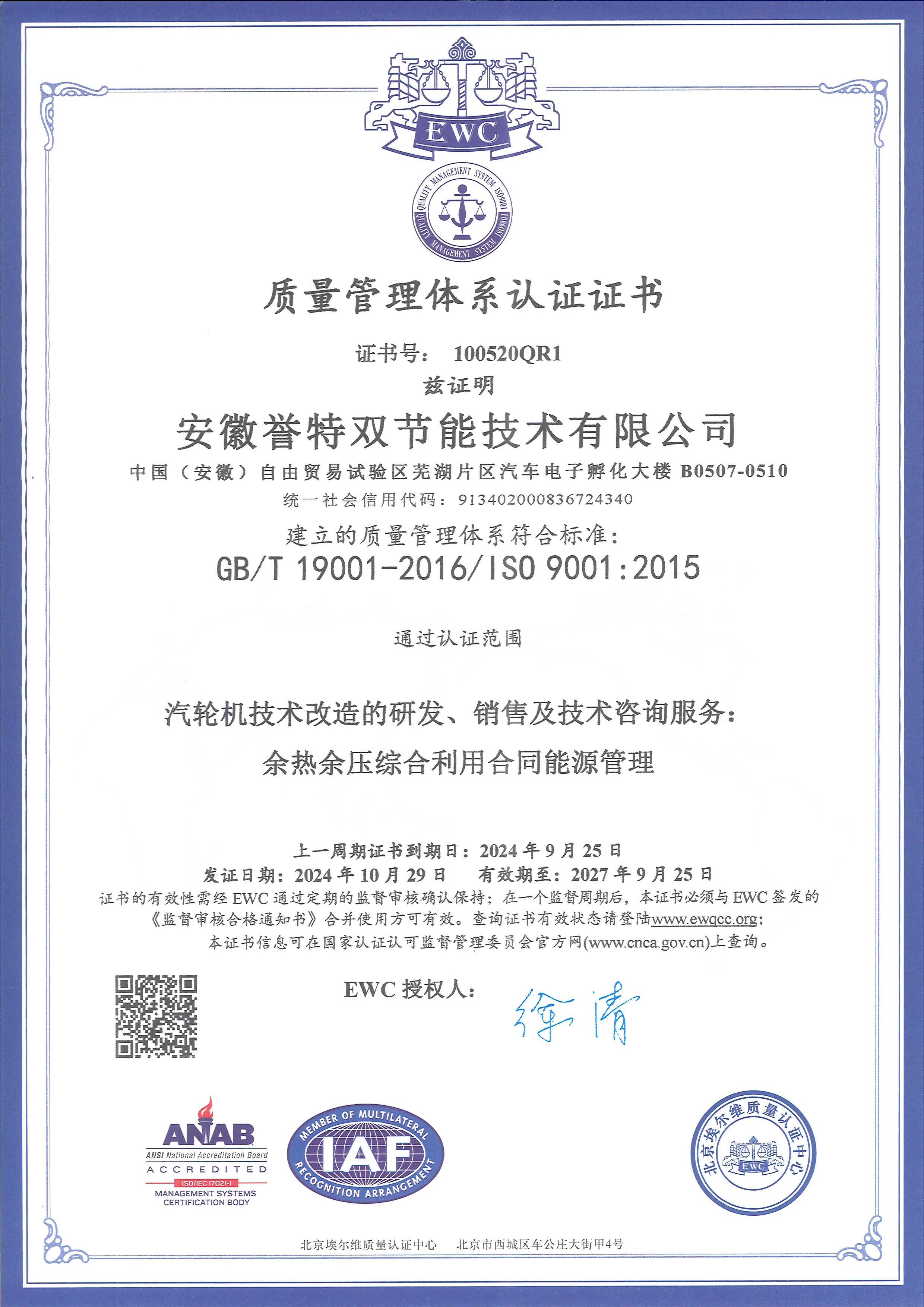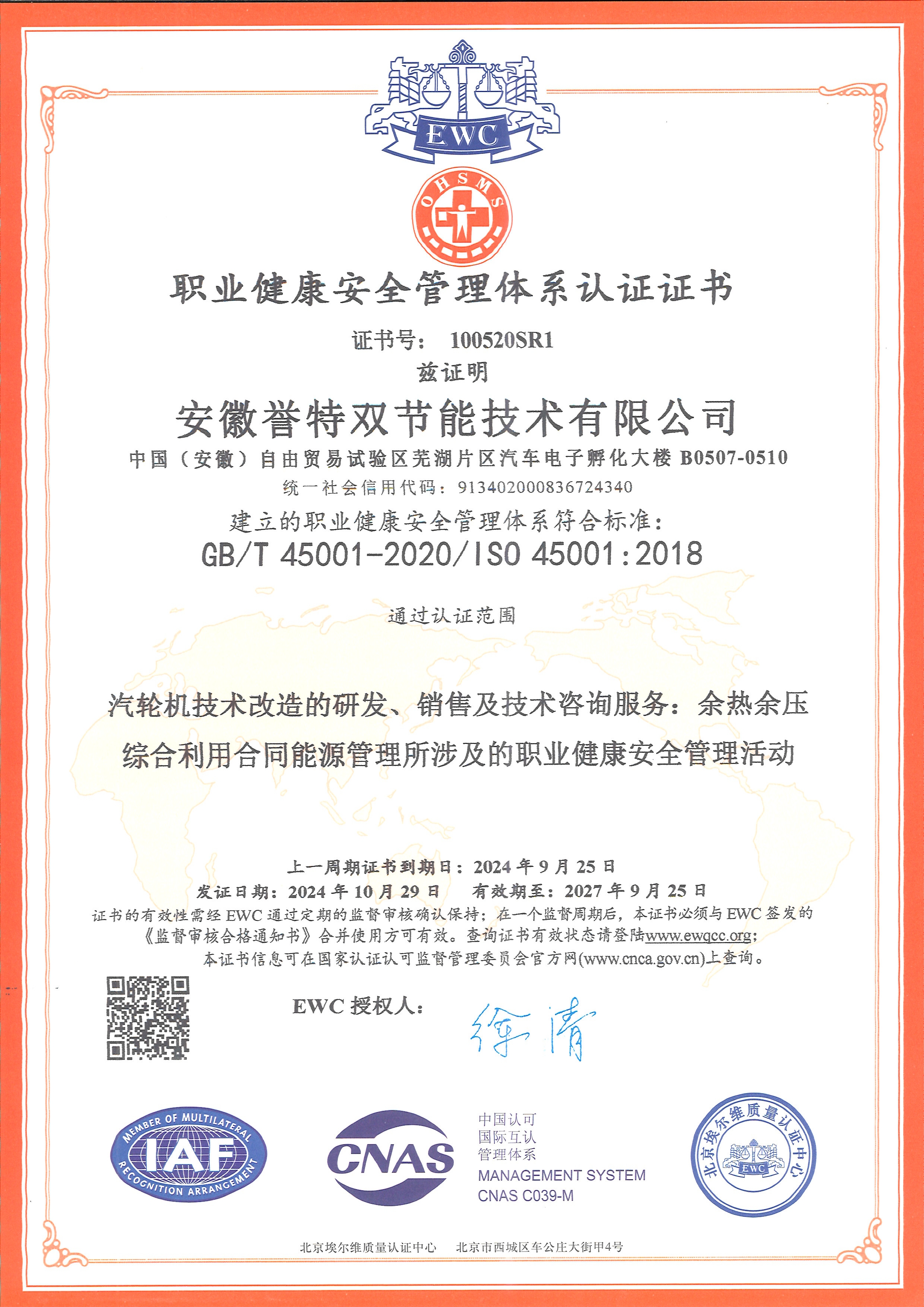通過三體系認(rèn)證,公司建立了系統(tǒng)、開放、高效的管理體系,使企業(yè)的管理更加規(guī)范化、標(biāo)準(zhǔn)化,進(jìn)而提高企業(yè)的運(yùn)營效率和市場競爭力,在展示企業(yè)良好形象的同時(shí),推動(dòng)企業(yè)持續(xù)改進(jìn)和自我完善,由此提高公司的信譽(yù)和客戶信任度,為更多用能單位提供高質(zhì)量、高水平服務(wù)。
