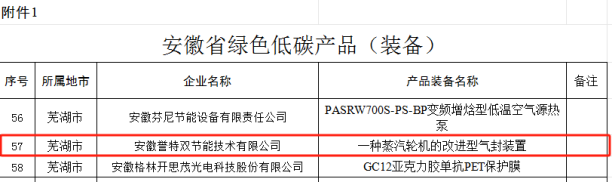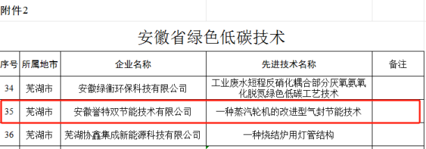 公司分別入選“安徽省綠色低碳產(chǎn)品(裝備)”、“安徽省綠色低碳技術(shù)”、“安徽省綠色低碳制造及服務(wù)供應(yīng)商”目錄。其中安徽省綠色低碳制造及服務(wù)供應(yīng)商目錄中,安徽省全行業(yè)領(lǐng)域共計(jì)58家企業(yè),我公司為蕪湖市唯一一家入選企業(yè),同時(shí)也是公司連續(xù)7年入選該目錄,再次表示熱烈祝賀!
