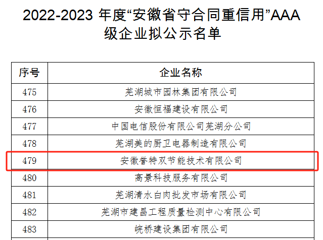 信譽(yù)是企業(yè)長(zhǎng)期穩(wěn)定發(fā)展的根基,反映企業(yè)在運(yùn)營(yíng)過(guò)程中的經(jīng)營(yíng)理念和發(fā)展宗旨,信譽(yù)程度在對(duì)外商務(wù)往來(lái)中已成為重要環(huán)節(jié)。本次入選安徽省守合同重信用AAA級(jí)企業(yè),綜合體現(xiàn)了我公司財(cái)務(wù)狀況良好、企業(yè)文化優(yōu)秀、社會(huì)信譽(yù)度高,在經(jīng)營(yíng)過(guò)程中無(wú)違法亂紀(jì)行為、無(wú)不良信用記錄等,樹(shù)立了良好的標(biāo)桿示范形象,公司也將繼續(xù)秉承守合同重信用經(jīng)營(yíng)理念,為國(guó)家節(jié)能環(huán)保事業(yè)做出更大的貢獻(xiàn),一諾千金,合作共贏!
