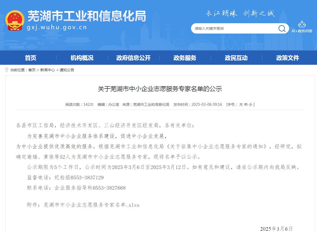 公司團(tuán)隊(duì)人員入選蕪湖市中小企業(yè)志愿服務(wù)專家團(tuán)